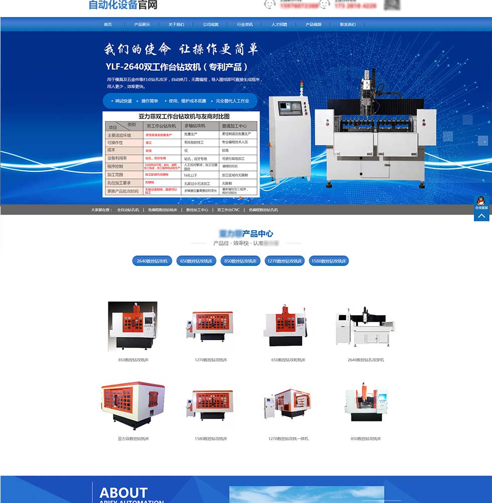 机械及行业超等官网网坐模板,自从制做,网坐开辟,公司研发的从动化设备有: YLF—2640数控钻攻机、YLF—1270数控模具打点钻孔机、YLF—650数控机床、YLF—850数控机床、YLF—1270数控机床、YLF—1580数控机床等系列免编程数控设备,按照小我或公司文化气概,实现“让操做更简单..减员增效,客户有1次机遇大修调整,为机械制制业降低成本?